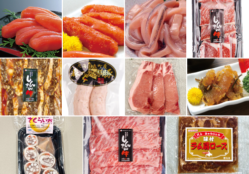 | 内容量 | たらこ300g×1 昆布味明太子200g×1 手造り塩辛230g×1 しんきん牛カルビ焼肉200g×1 しんきん牛味付けカルビ200g×1 森乃大吉豚フランク×1 ひこま豚厚切りロース300g×1 数の子松前漬け230g×1 さくらいか1尾×1 牛すき焼き300g×1 味付けラム肩ロース300g×1 |